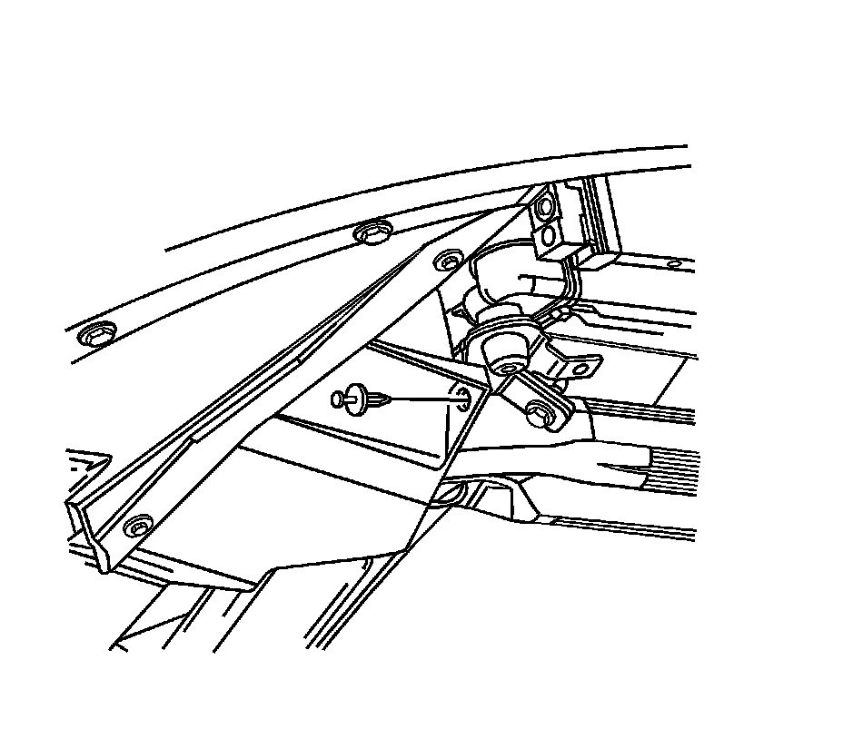 18. Remove the right engine splash shield to radiator mount push-in retainer.