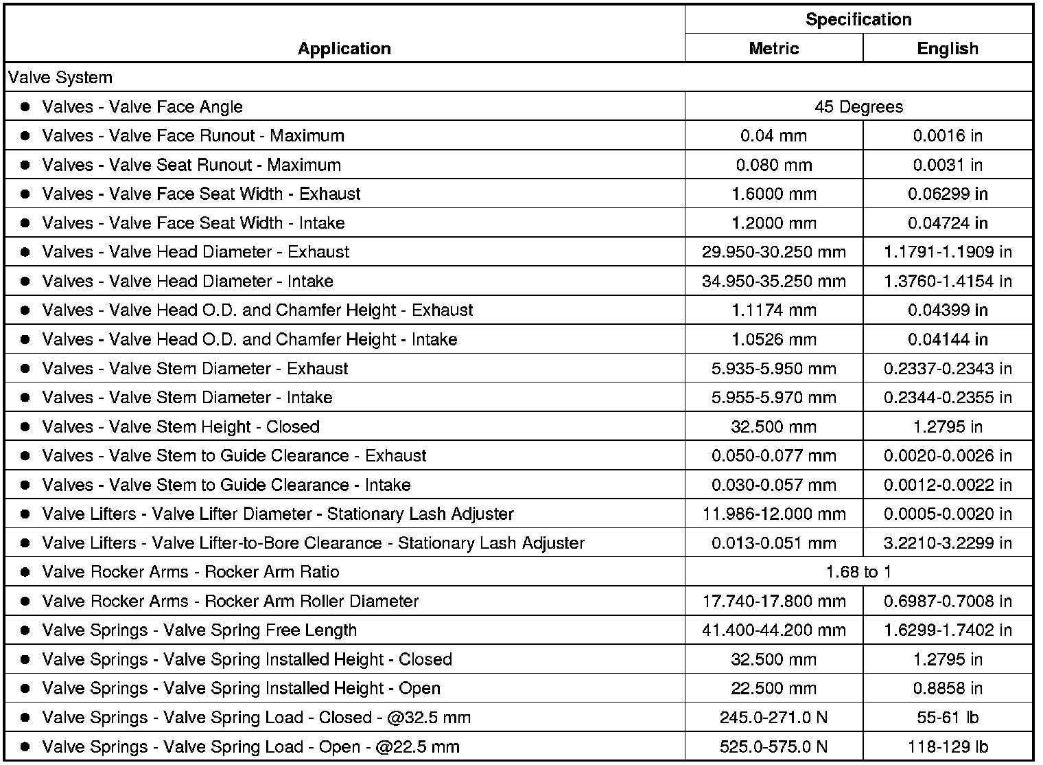 Engine Mechanical Specifications