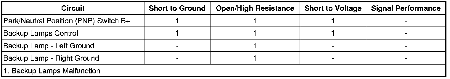 • If the backup lamps do not illuminate, test the control circuit for a short to ground or an open/high resistance. If the circuit tests normal, replace the backup lamp.