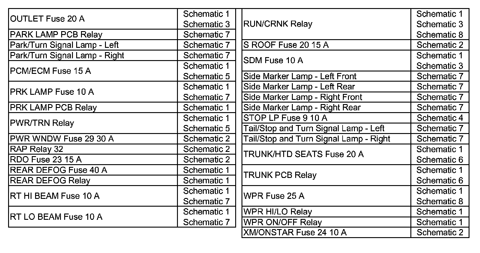 Wiring Schematic Index