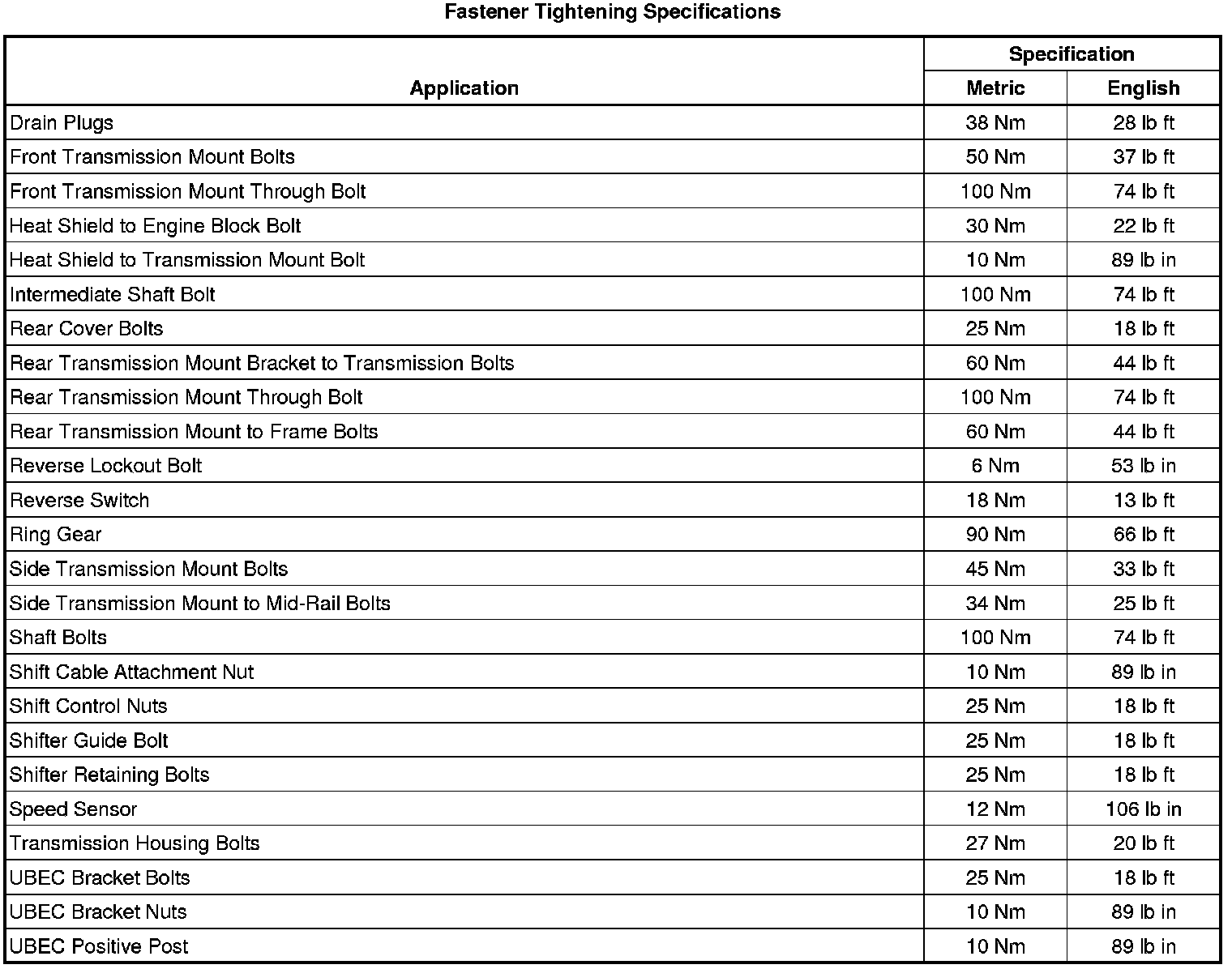 Fastener Tightening Specifications