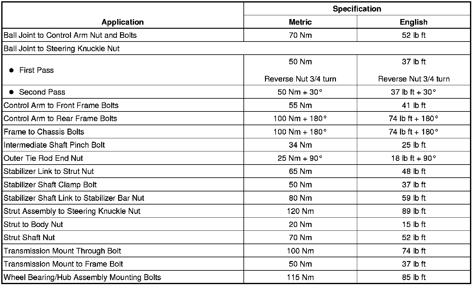 Fastener Tightening Specifications