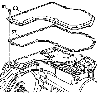 4. Install the gasket (87) and bottom pan (88) onto the transmission case.