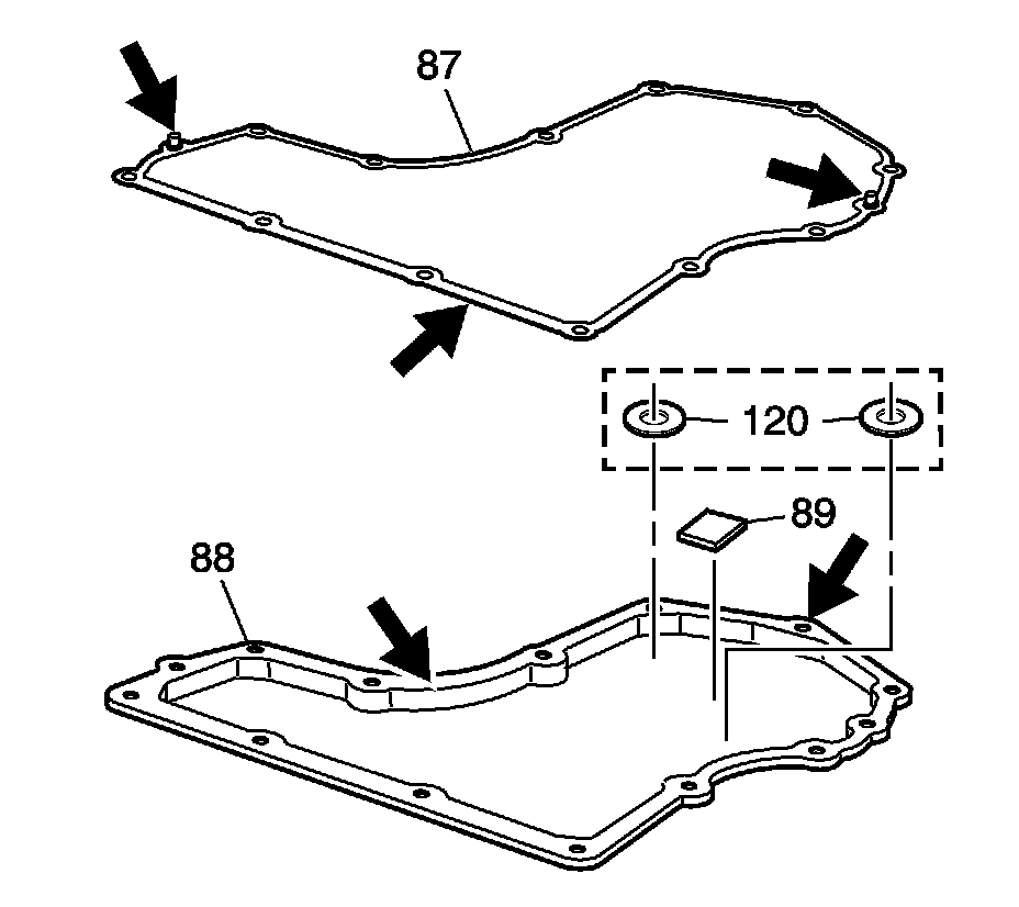 3. Clean and dry the bottom pan, and gasket. Discard magnet (89), and install two magnets (120).