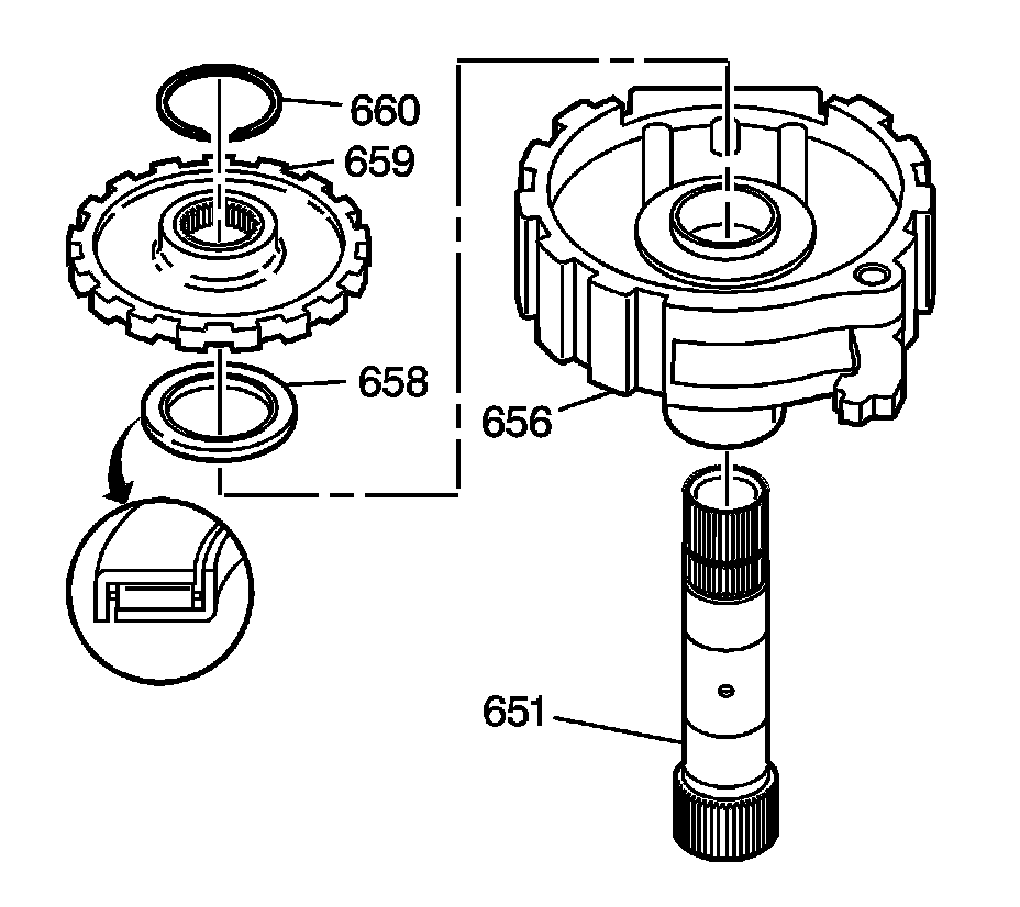 5. Remove the forward clutch support to parking pawl gear thrust bearing (658).