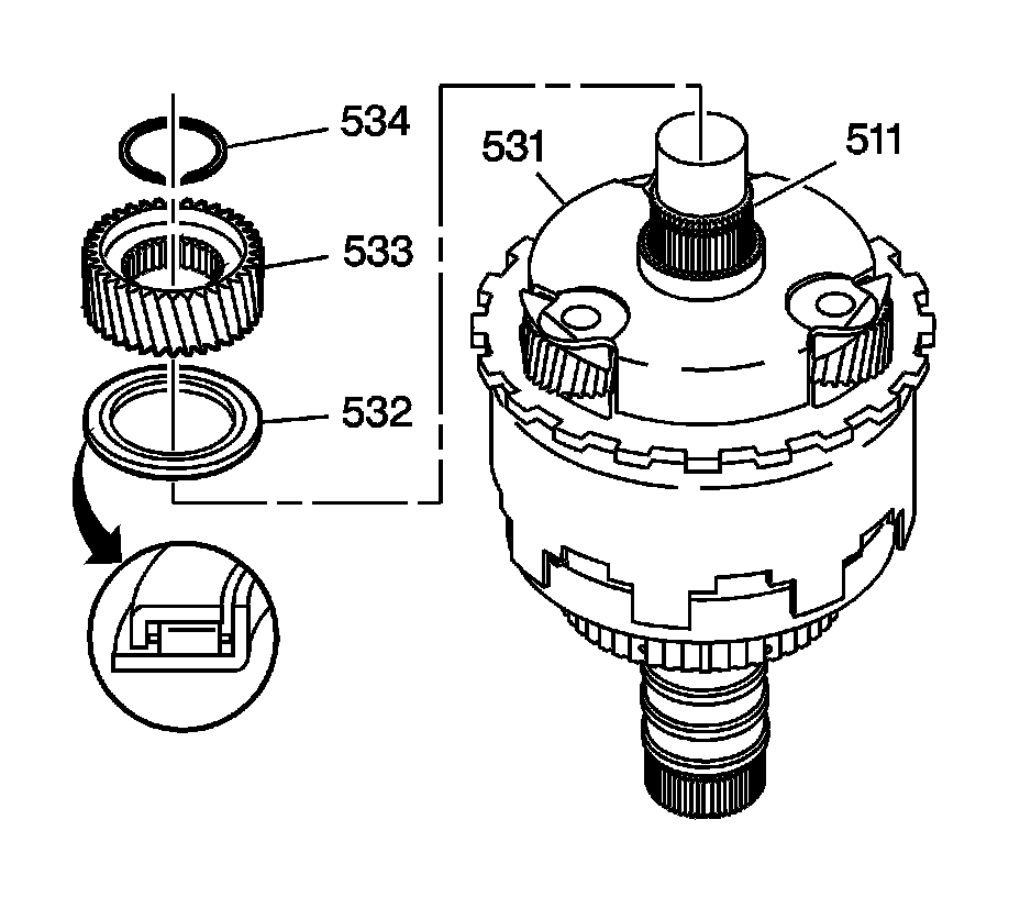 34. Assemble the reaction carrier assembly (531) onto the reaction sun gear.