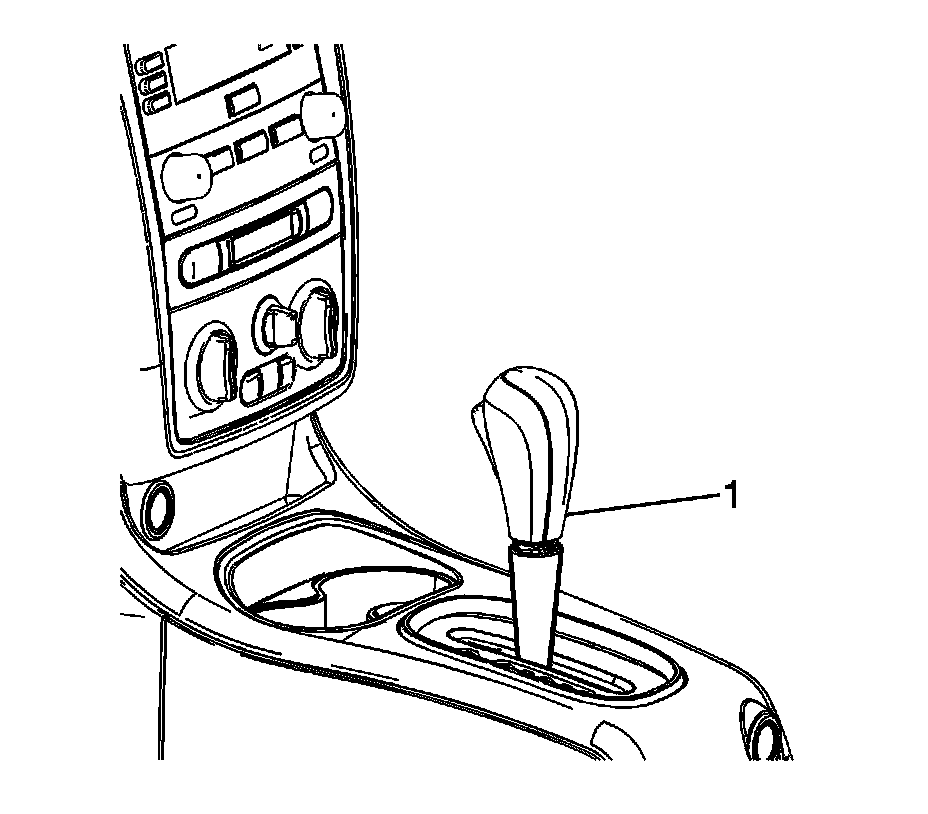 1. Pull the shift knob bezel (1) down to expose the shift knob retaining screw.