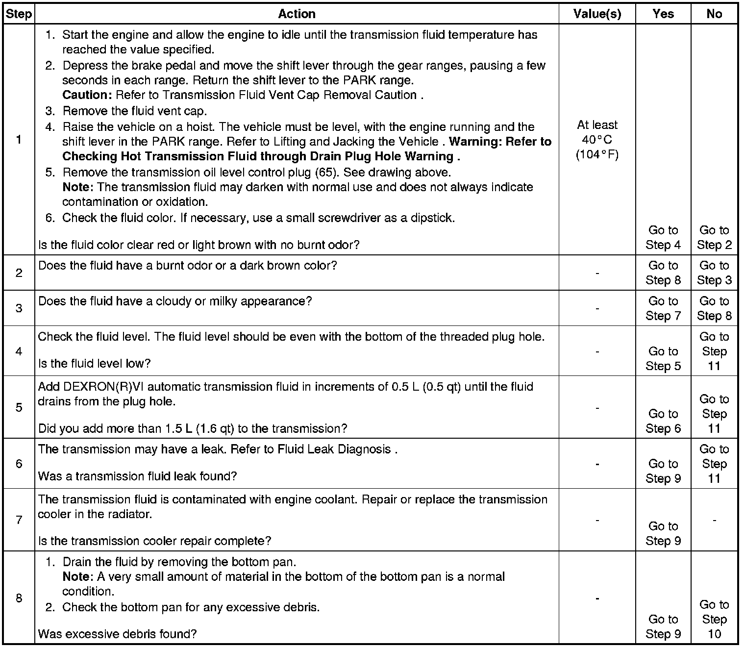 The oil level control plug (65) is located on the torque converter side of the transmission right hand axle seal passenger side.