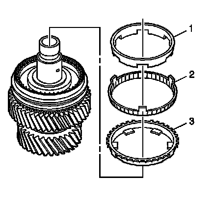 8. Install the 1st gear outer cone (3).