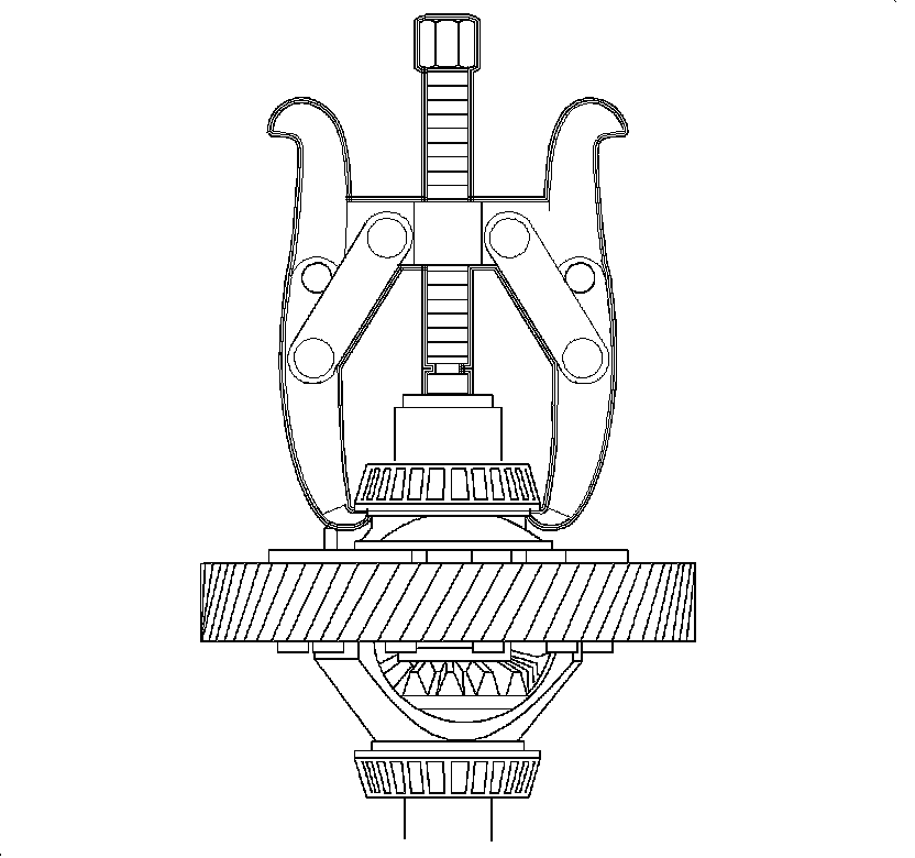 Caution: The thread on adapter must be used on the 5th gear puller when removing the differential bearings. If the adapter is not used, the puller can be damaged.