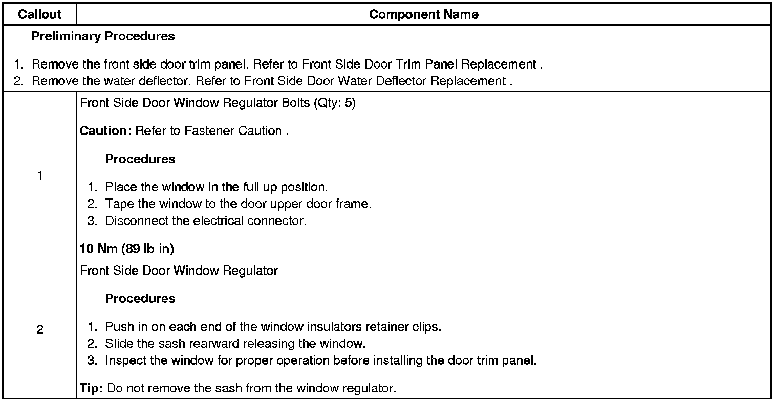 Front Side Door Window Regulator Replacement (Manual Sedan)