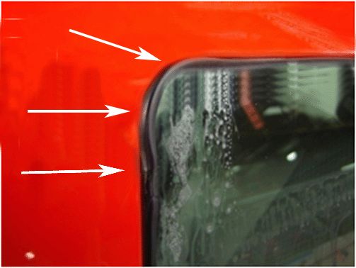 Inspect the perimeter of the rear door fixed glass and ensure that the door glass run channel is correctly seated in the door frame.