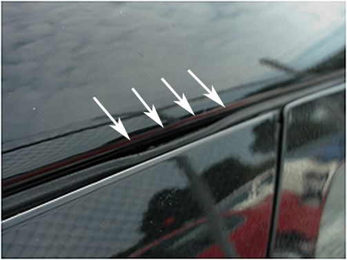 Some customers may comment on a wind noise in the upper B pillar area. This condition may be caused by a gap between the auxiliary weatherstrip and the roof rail area. Use the following steps to revise the auxiliary weatherstrip attachment.