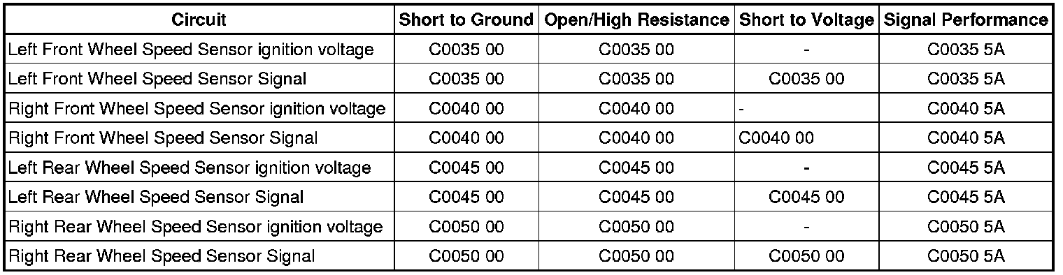 * A short to ground, or an open/high resistance is detected on the wheel speed sensor ignition voltage circuit.