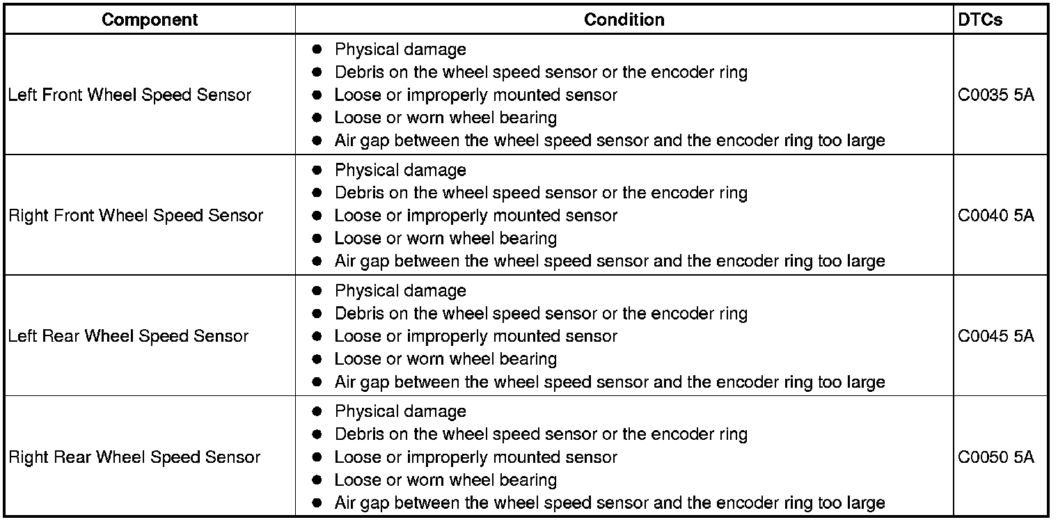- Left Rear Wheel Speed Sensor Circuit Plausibility Failure
