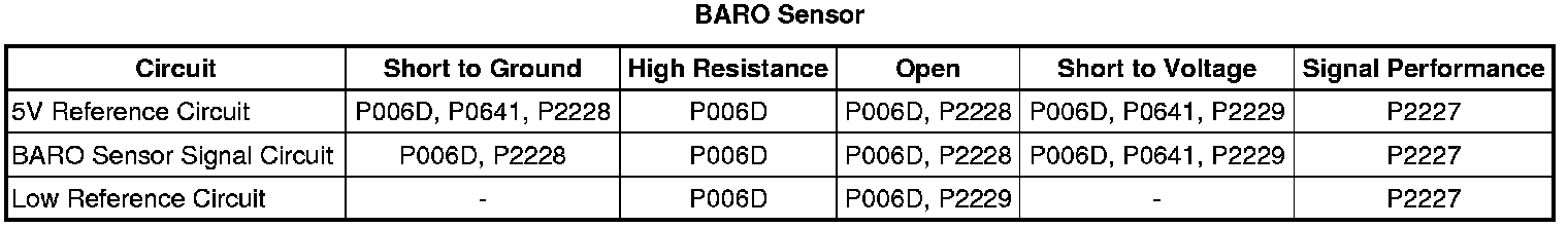 * The ECM has not detected a wide open throttle update event within the previous 2 kilometers (1.2 miles) and the difference between BARO, and a calculated BARO using the SCIAP sensor, is greater than 60 kPa for greater than 30 seconds.