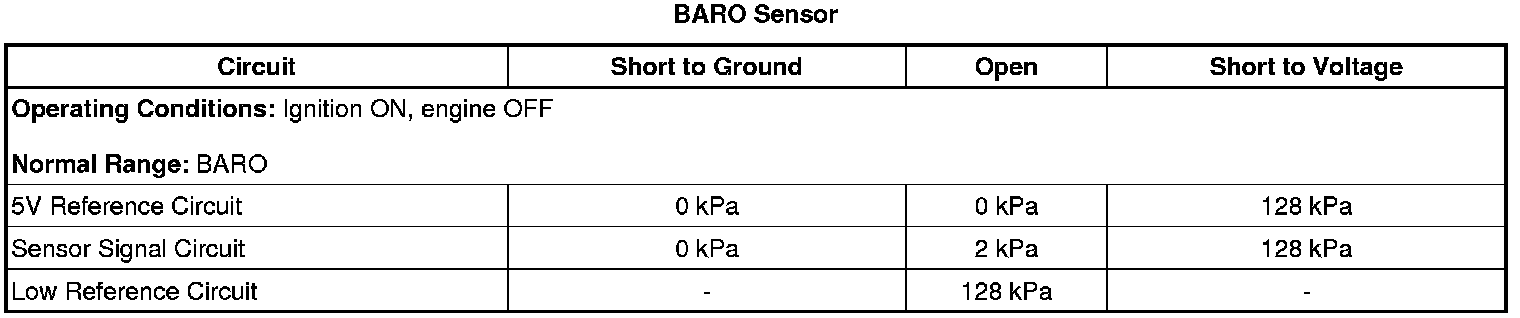 3. Use the observed MAP Sensor scan tool parameter that is closest to a value that is indicated in the first column.