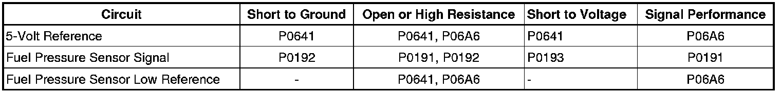 Note: Verify that the fuel tank is not empty. Only perform this diagnostic if there is at least 2 gallons of fuel in the fuel tank. Clear the DTC, and start and run the engine. Verify that the DTC P0191 resets before proceeding with the circuit system testing. If the DTC does not reset, refer to diagnostic aids.