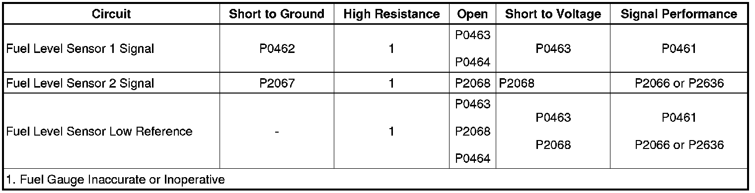 - Fuel Level Sensor 1 Circuit Low Voltage