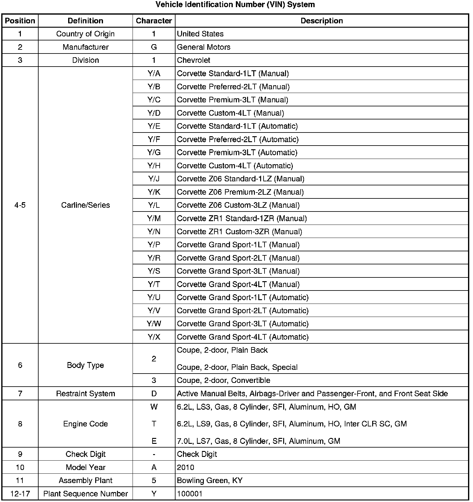 Vehicle, Engine and Transmission ID and VIN Location, Derivative and Usage