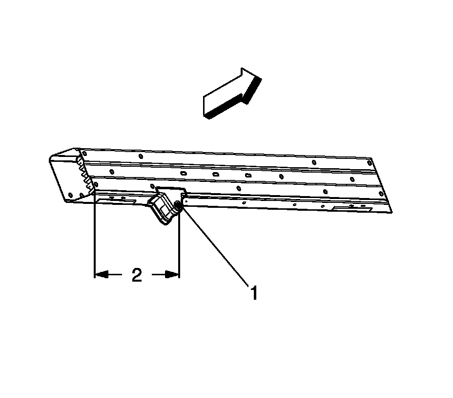 3.From the right outer edge of the impact bar (2) measure 269 mm (10 5/8 in) to the center of the tow hook (1).
