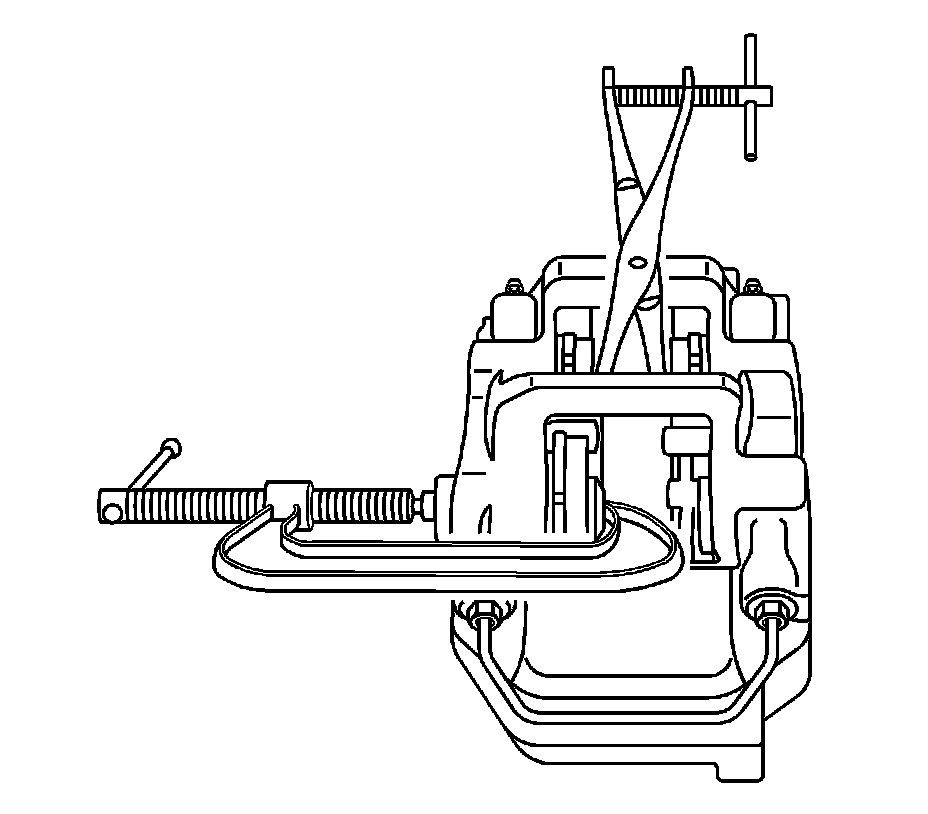 1. Remove the rear brake caliper. Refer to Rear Brake Caliper Replacement (JL9, J55) (Rear Brake Caliper Replacement (JL9, J55)) Rear Brake Caliper Replacement (J56) (Rear Brake Caliper Replacement (J56)) Rear Brake Caliper Replacement (J57) (Rear Brake Caliper Replacement (J57)).
