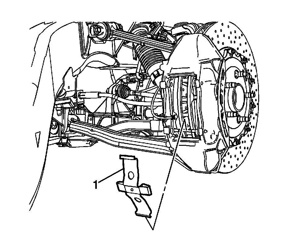 Caution: Disc brake rotor protectors MUST be installed prior to tire and wheel assembly removal to avoid ceramic brake rotor damage due to contact between the tire and wheel assembly and the rotor. If the ceramic brake rotor is damaged replacement may be required.