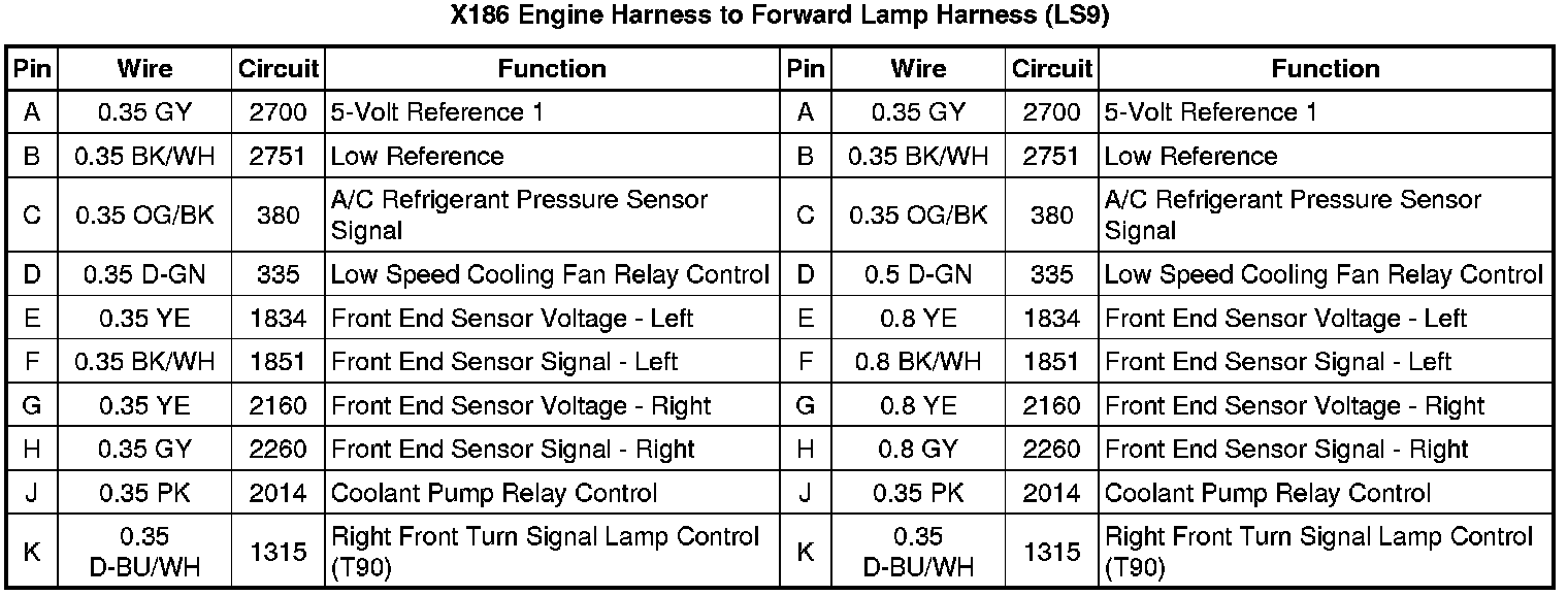 X186 Engine Harness to Forward Lamp Harness (LS7)