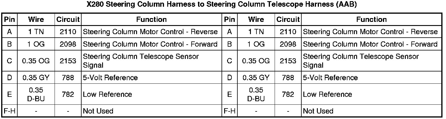 X280 Steering Column Harness to Steering Column Telescope Harness (AAB)