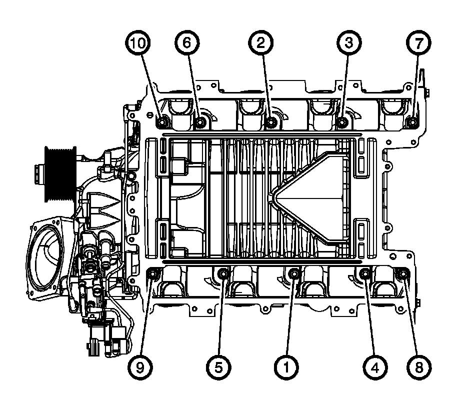 Bolts (1-10) second pass 80 Nm (60 lb ft)