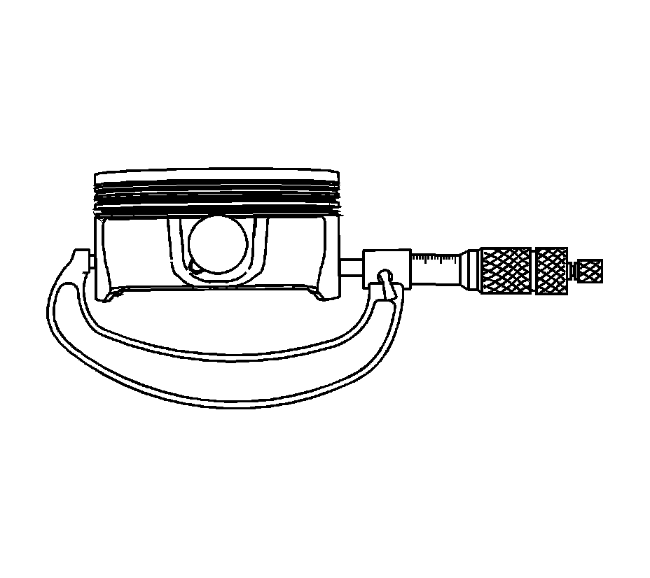1. With a micrometer at a right angle, measure the piston outside diameter (OD). Measure the diameter 43 mm (1.69 in) from the top of the piston. Refer to Engine Mechanical Specifications (6.2L LS3) (Service Limits & General Specifications) Engine Mechanical Specifications (6.2L LS9) (Service Limits & General Specifications) Engine Mechanical Specifications (7.0L) (Service Limits & General Specifications).