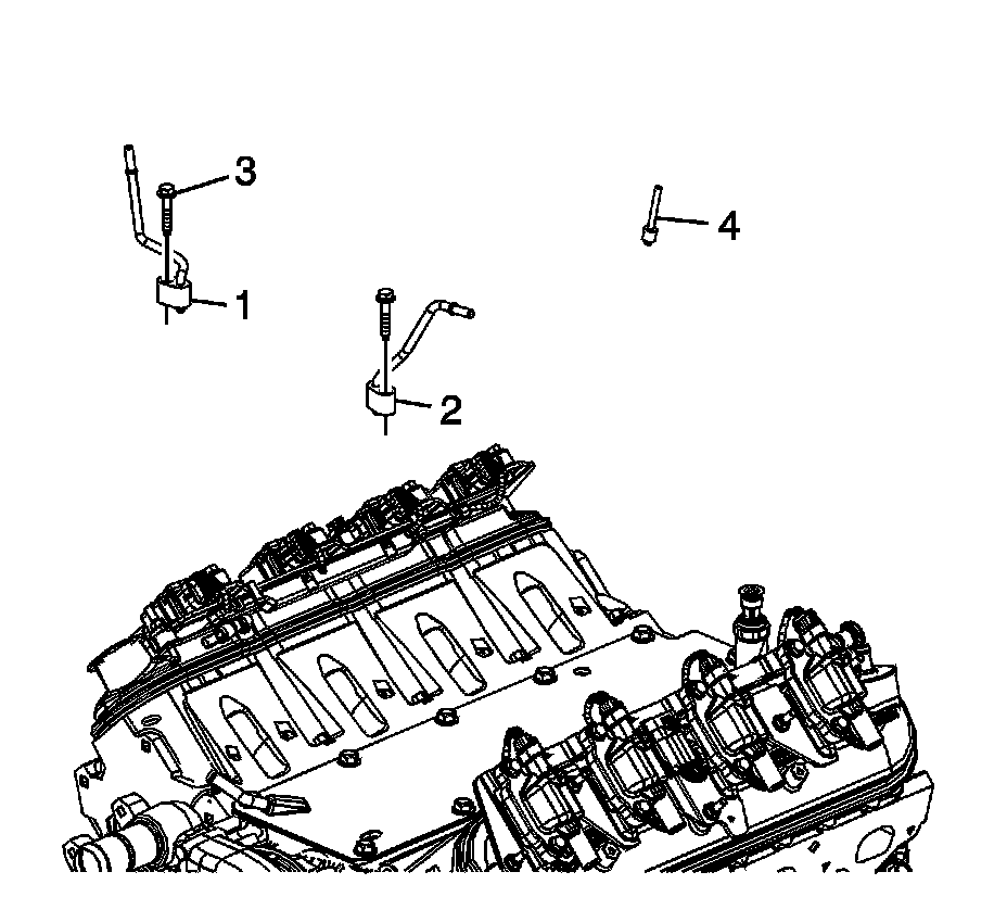 2. Install the pipes (1 and 2) and bolts (3) and tighten to 12 Nm (106 lb in).