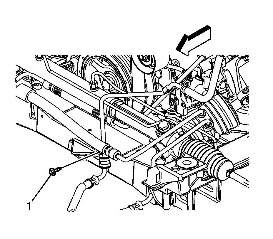 5. Disconnect the power steering cooler hose (1) from the steering gear.
