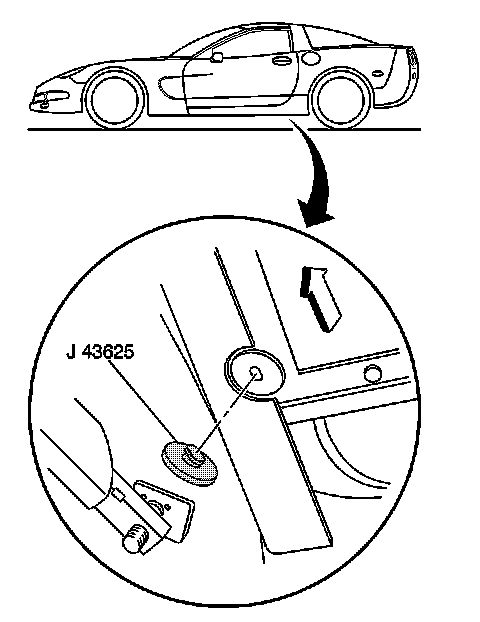 Note: Use only service jacks utilizing 64 mm (21/2 inch) or smaller diameter lifting pads, to reduce the possibility of contact with undesired areas of the vehicle: