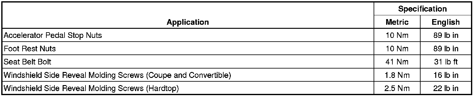 Fastener Tightening Specifications