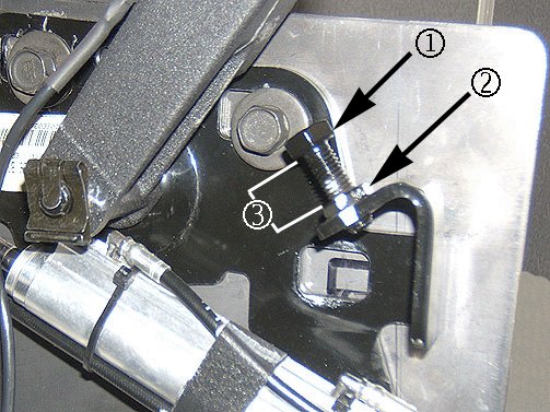 Turning the adjuster stop bolt inward will move the top forward and bring the #1 bow down. This adjustment will move the top forward on the side adjusted, creating clearance between the #5 bow and the tonneau.