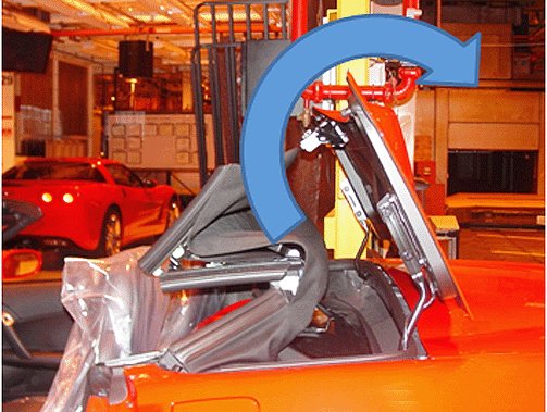 For illustration purposes, the above and following graphic show the folding top in closed position with the top cover and headliner removed.