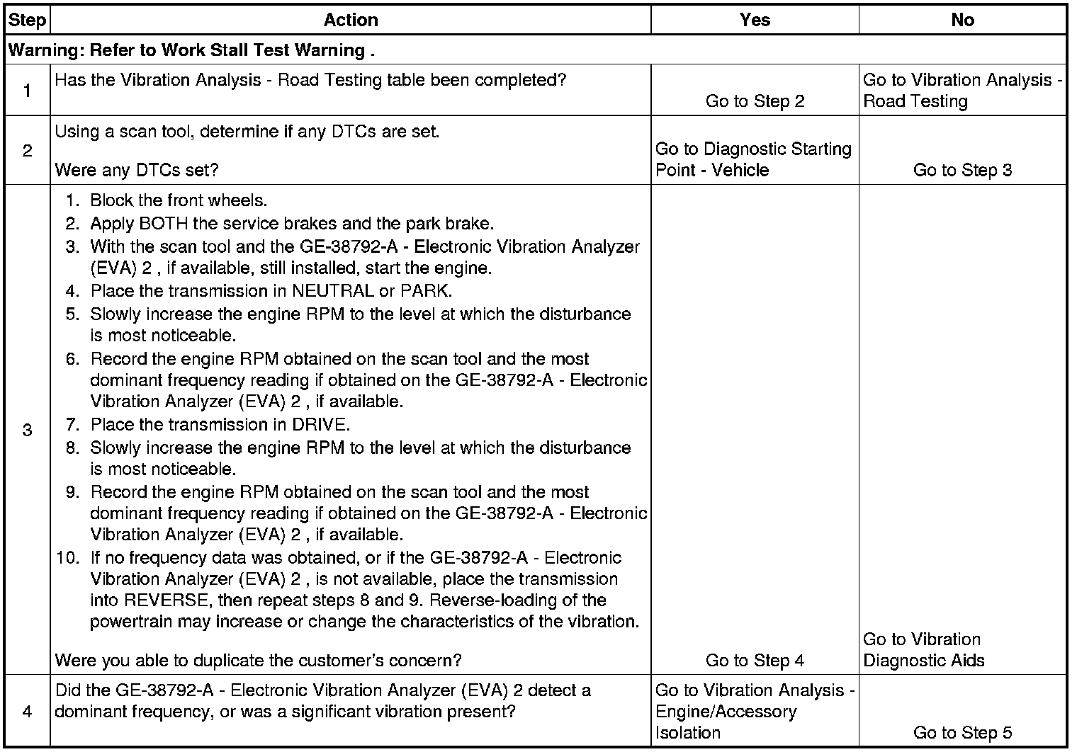 The numbers below refer to the step numbers on the diagnostic table.