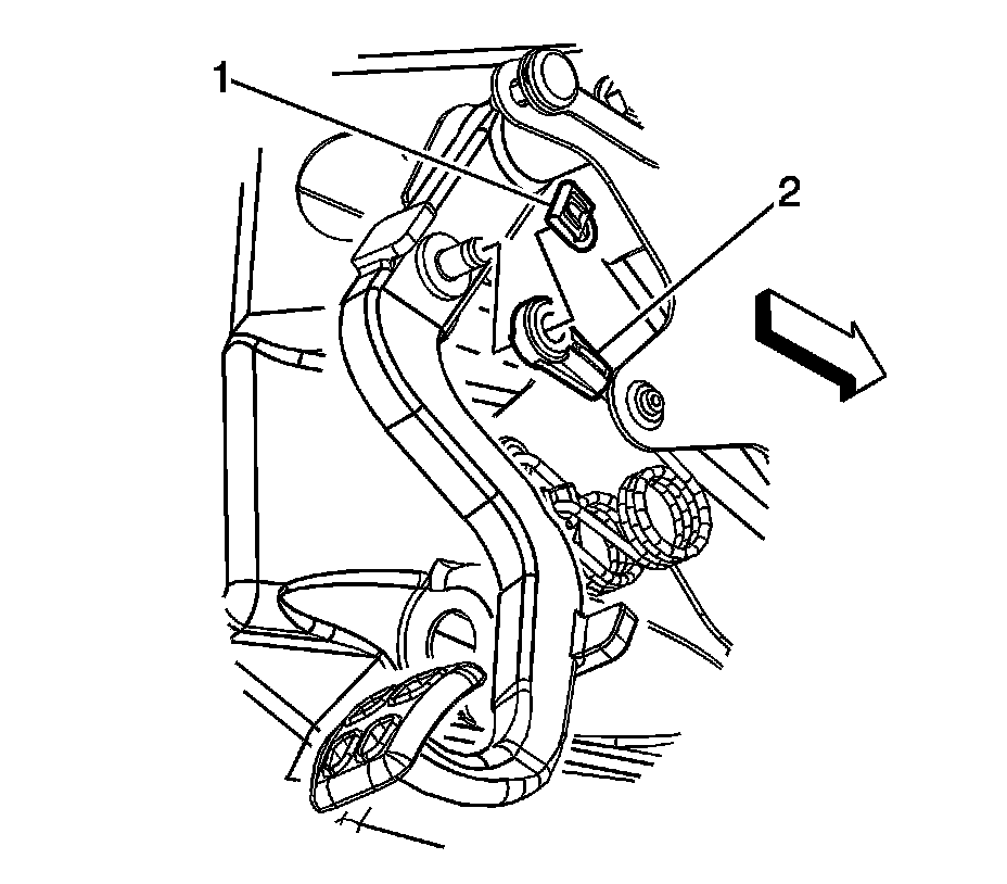 4. Remove the clutch master cylinder rod (2) from the clutch pedal.