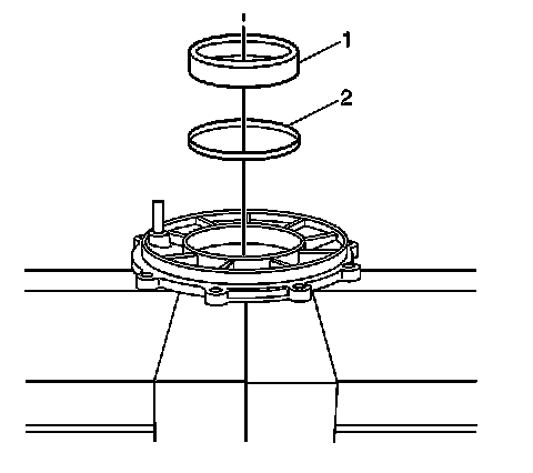 1. Install the selected shims (2) and the bearing race (1) to the new cover.