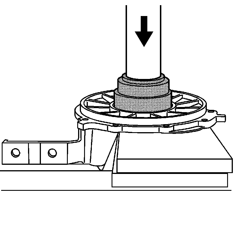 2. Press the shims and bearing race into the new cover using the J 42170 and a hydraulic press.