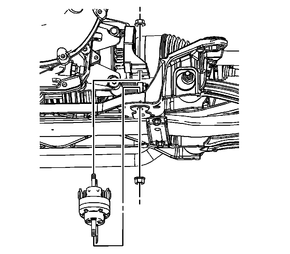 12. Remove the 2 transaxle mount to differential bolts for the appropriate mount that will be replaced.