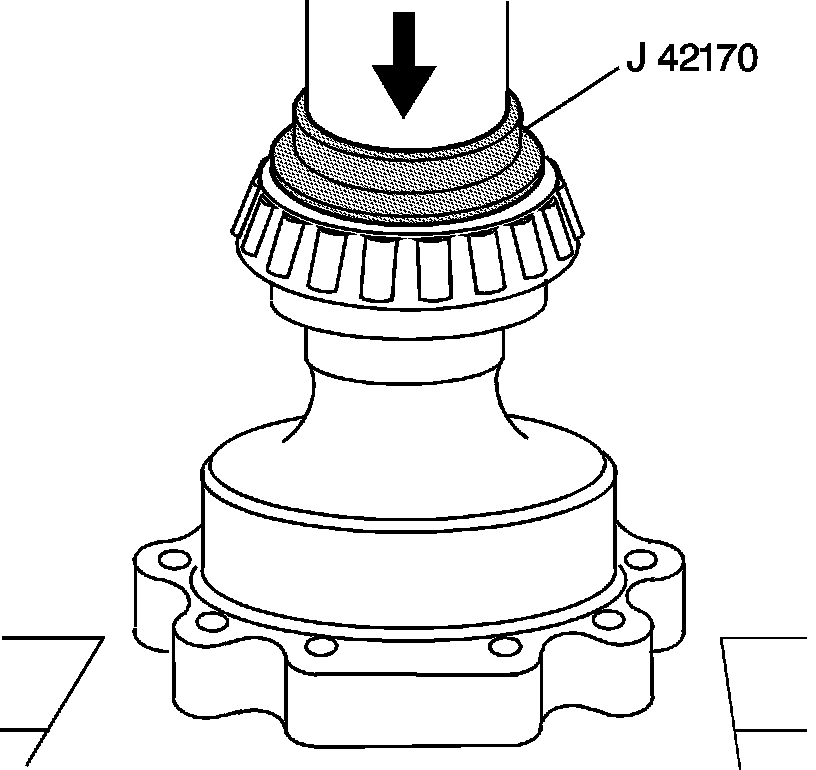 9. Using the J 42170 - installer and a hydraulic press, install the left side bearing to the differential.