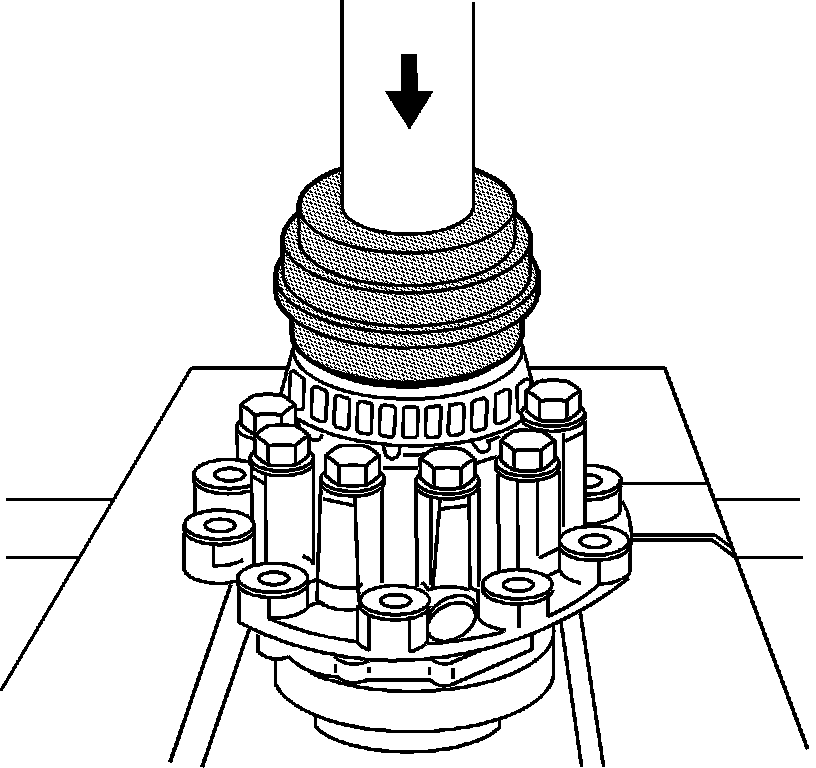 14. Using the J 42170 - installer and a hydraulic press, install the right side bearing to the differential.