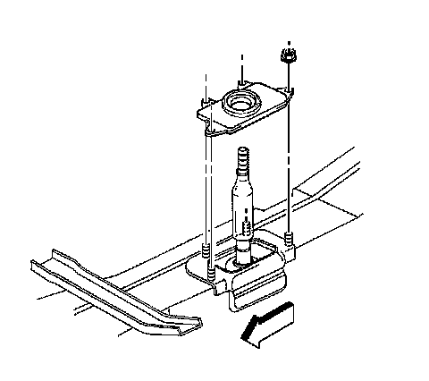 13. Raise the shift control to release the locator from the shiftier bracket on the side of the driveline support assembly.