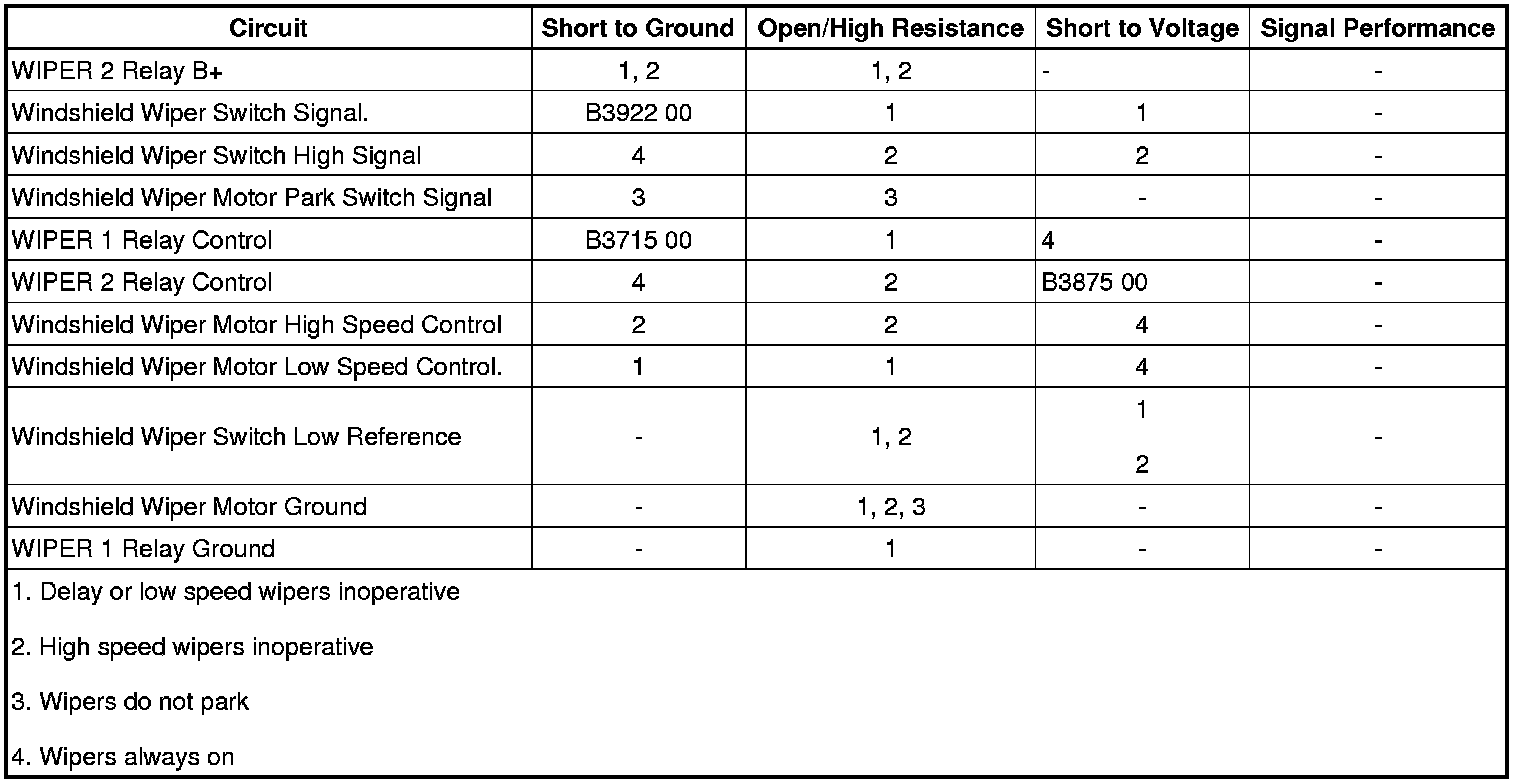 • If one or more of the commanded states do not work, perform the Wiper Motor tests in Circuit/System Testing and/or Component test.