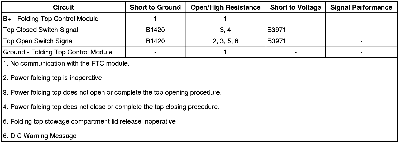 The FTC module will set B3971 as a current DTC if it senses that both the top open and top closed limit switches are active at the same time.