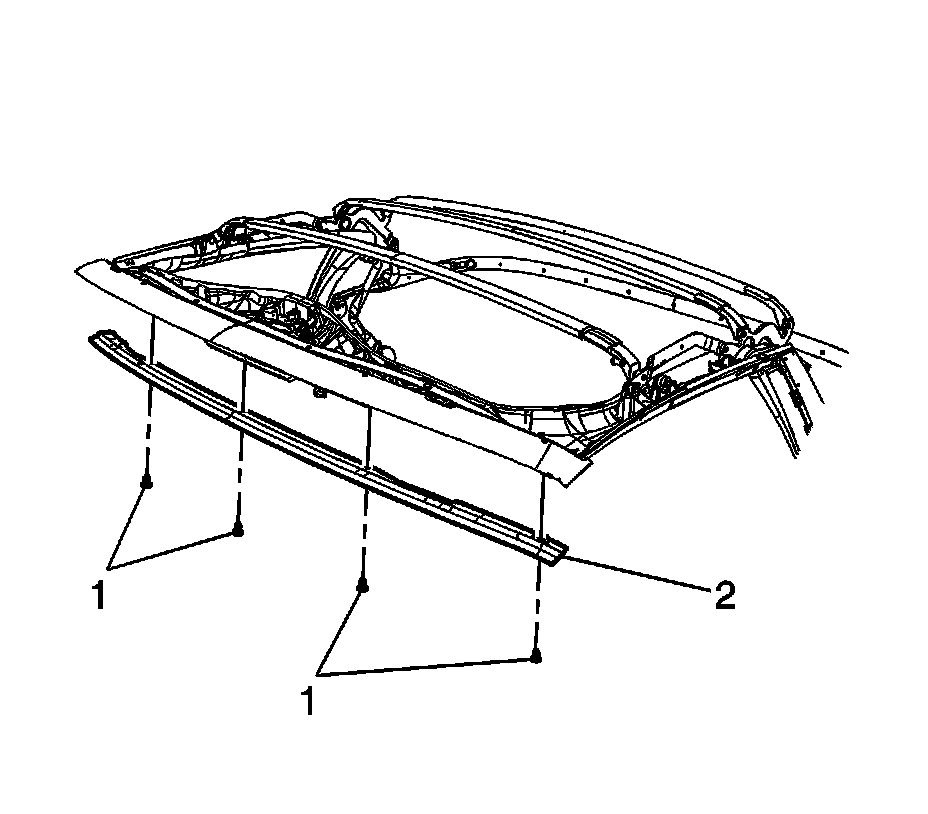 2. Remove the compression seal panel from the number 1 bow. Refer to Folding Top Seal Compression Panel Replacement (Folding Top Seal Compression Panel Replacement).