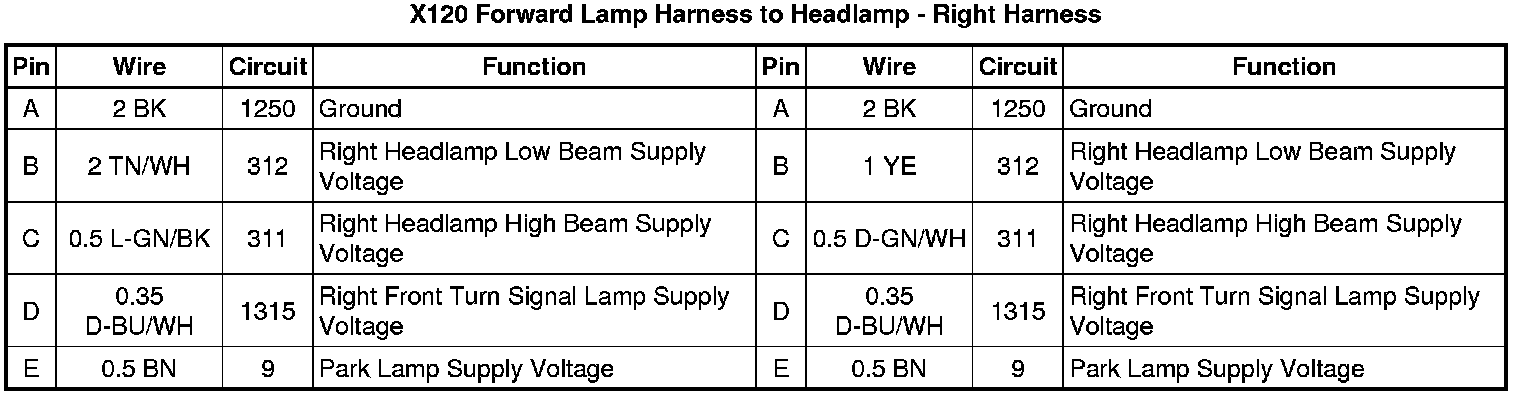 X120 Forward Lamp Harness to Headlamp - Right Harness