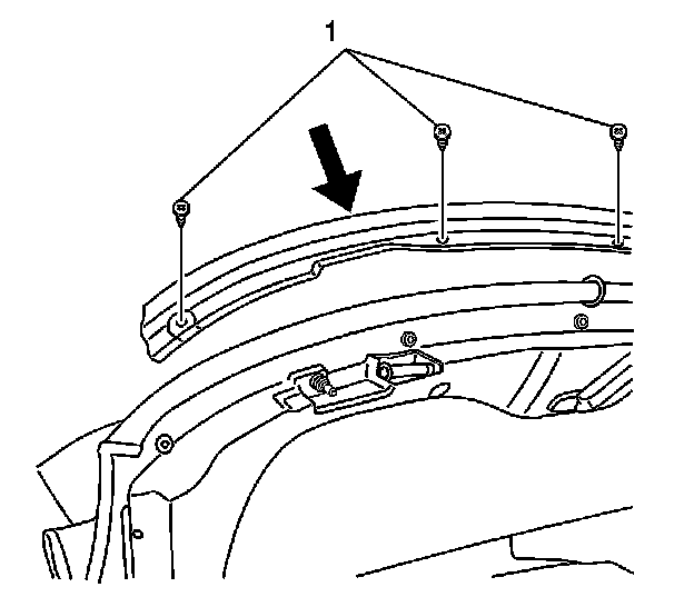 19. Install the screws (1) to secure the bracket and headliner to the rear side rail.